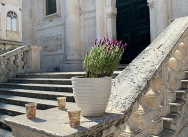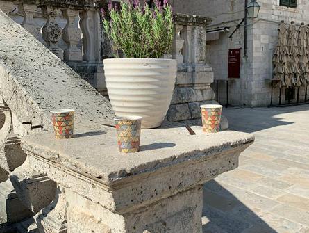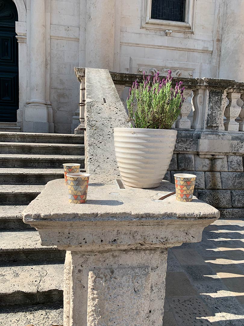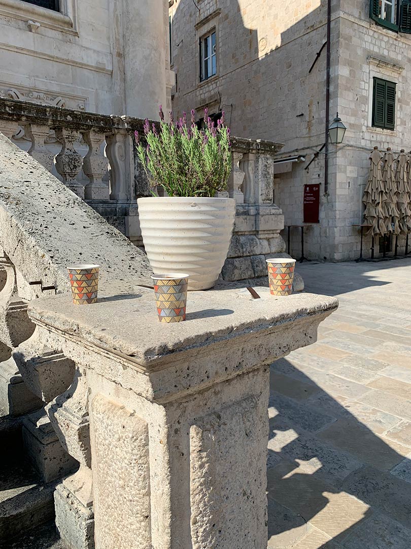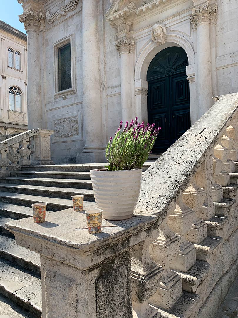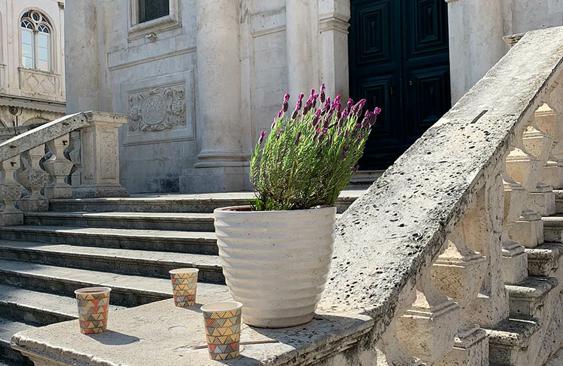 Grasta s lavandom na putu do moje tarace fermala je s nama na kafu na dno skalina od sv. Vlaha. Uljepšala nam je svima dan, a svatko je pomalo nosio pa smo se šalili da smo našli rješenje za ponovne zagrljaje – sa stablima i grastama.