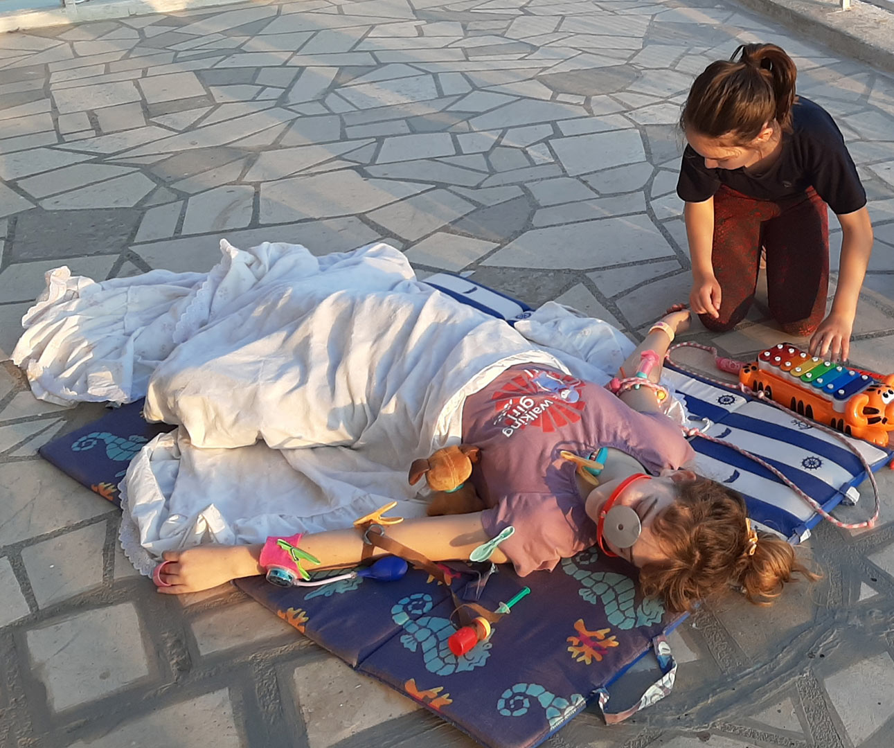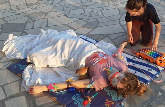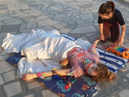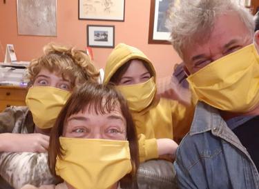 Fotografije su nastale na moju [Lidijinu] inicijativu. Bilo je i više različitih obiteljskih životnih trenutaka koje sam odlučila zabilježiti radi jedinstvenosti svoje prirode, jer jasno pokazuju koliko nam je svima situacija s COVID-om 19 promijenila život, te sam time htjela usmjeriti djecu da se lakše i s pozitivnim pogledom nose sa svime. Na fotografijama sam zabilježila dio prostora koji je suprug pretvorio u kućni kafić, njegov susret pred trgovinom s jednim od kolega i razgovor na propisanoj udaljenosti, svoje maske izrađene na singerici, kako se ljubimac nosi sa situacijom rada od doma, igru djece koja me zatekla jer naša djeca inače imaju toliko obaveza s dvije škole da se sigurno u ovo doba ne bi igrala, niti bi starija mogla čuvati mlađe rođake. Ali na sve to me iznenadio odgovor osmogodišnjakinje da se igraju da Ines ima najteži slučaj korone i činjenica da su od ksilifona i konopa za preskakanje napravili infuziju i nešto za što oni smatraju da je respirator. To mi je možda i najvažnija fotografija i žao mi je da nije kvalitetnije slikana jer sam je zapravo zabilježila u prolazu, za sjećanje.