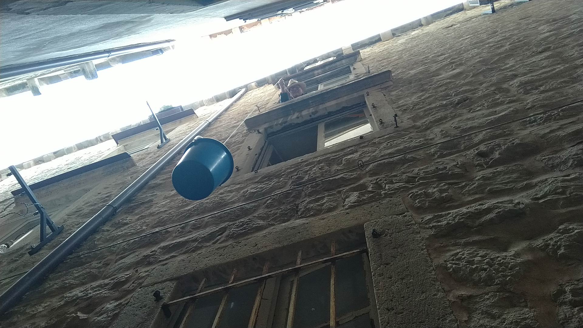 Socijalno distanciranje u doba korone i nonova žičara za dostavu hrane. Moram napomenuti da je žičara ponekad i prije bila u funkciji bez obzira na epidemiju, kada se nama ili nonu ne da činit skale, spuštati se, ili penjati na drugi kat do ateljea, a treba neke stvari pokupit ili uzet. Sada se taj izum pokazao korisnim, tako da ne radimo bespotreban dodatni fizički kontakt kada nonu dostavljamo hranu, novine, boje za slikanje i sl.