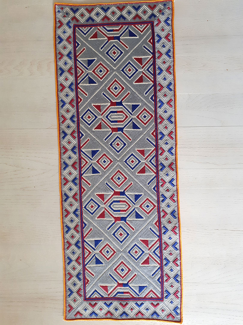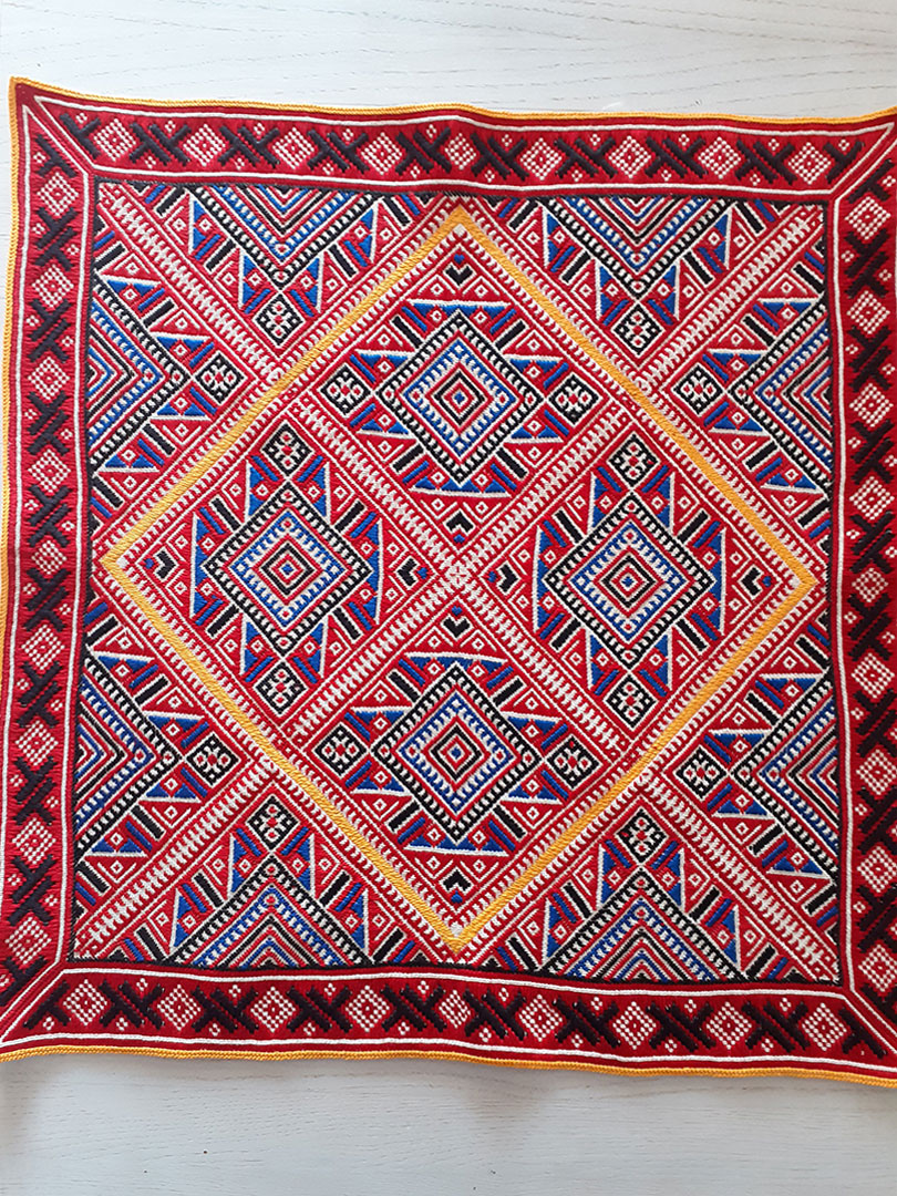 Karantena, 24 sata doma, višak vremena posvećen konavoskom vezu koji obožavam, kojemu se divim. Radi se o motivima sa košulje ženske narodne nošnje. Prvi (kocka) se zove skadarica i vezen je u orginalnoj boji, a drugi pravokutan je motiv kadifača i za osnovnu boju sam uzela sivu, malo radi promjene i orginalnosti. Unikati su.